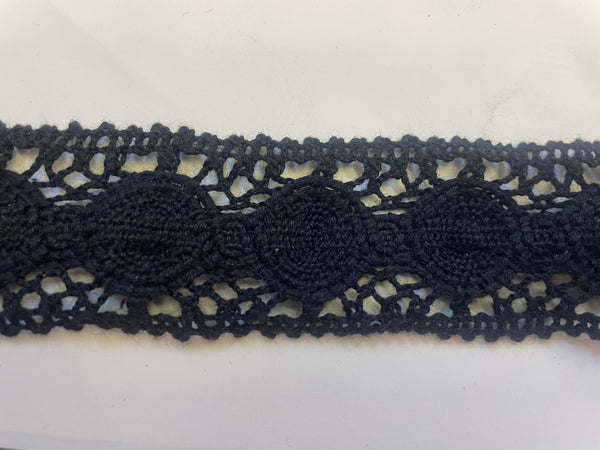 Vintage 4 Yards Black Crochet Insert Lace Trim 1 1/4”