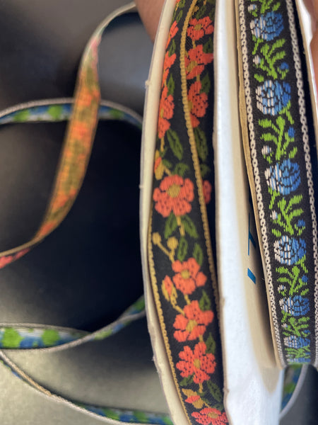 10 yards Jacquard navy blue lime green pink hot pink floral narrow ribbon 3/8"